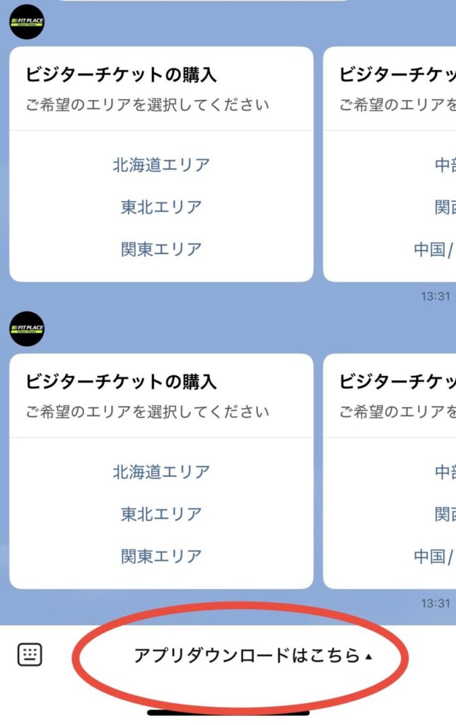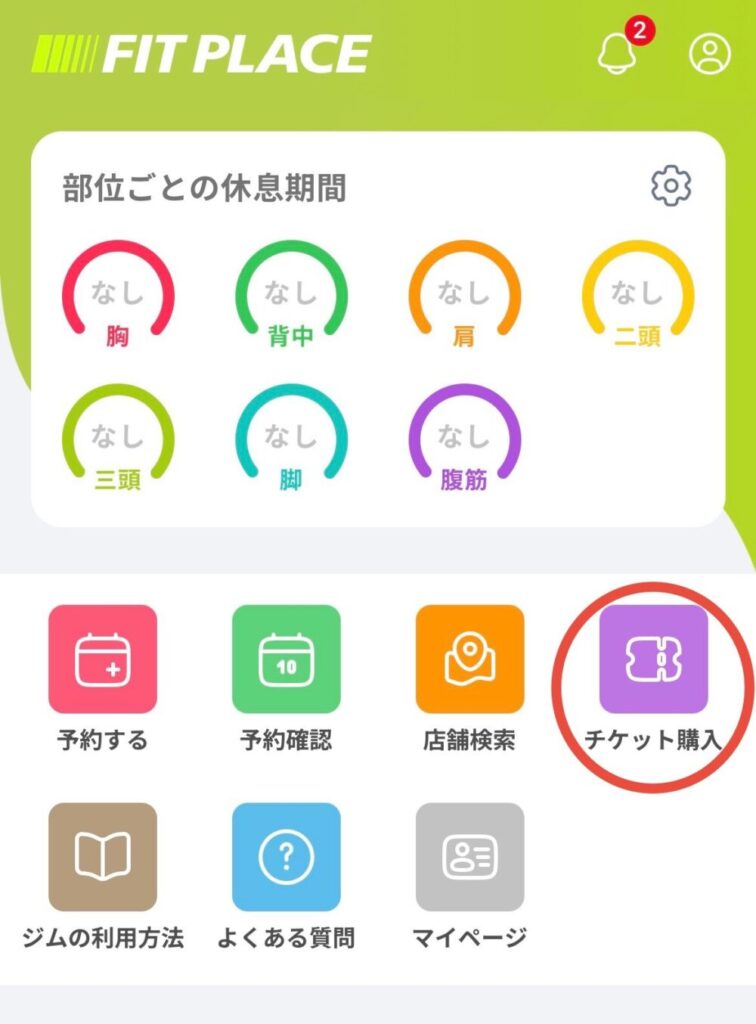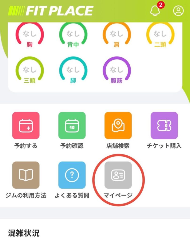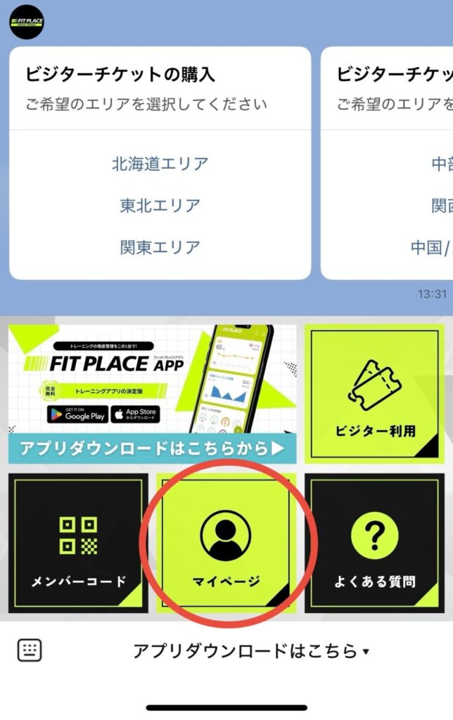 アプリのマイページもしくは、フィットプレイスの公式ラインからアプリダウンロードはこちらを押すとマイページが出てきます。