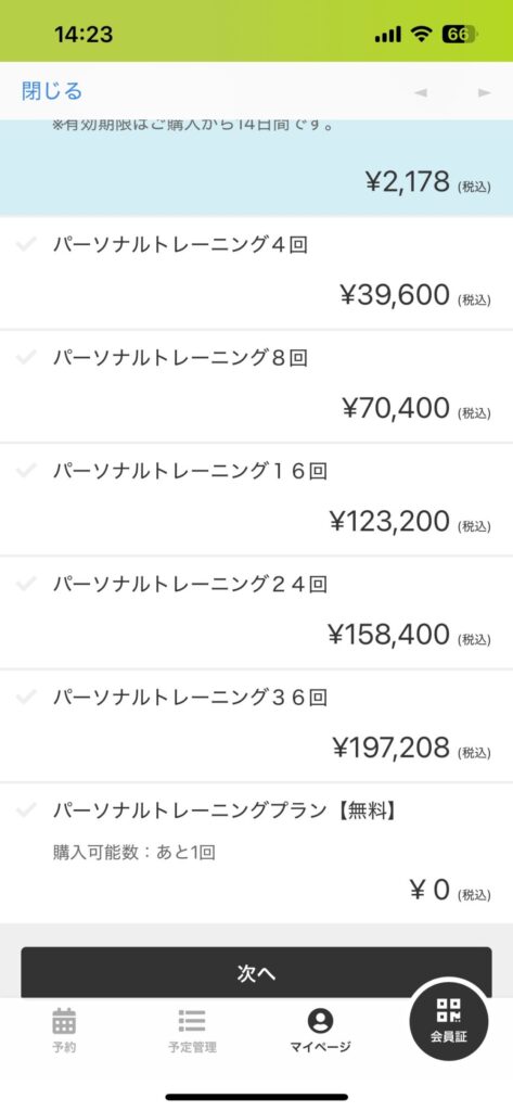 また、店舗によっては、マイページからパーソナルトレーニングチケットを購入し、