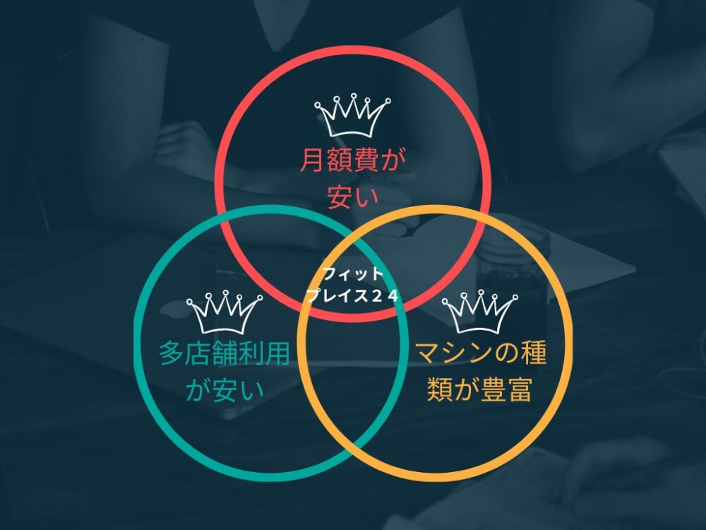 フィットプレイス24が人気の理由は、月額3270円(神田店等一部店舗は4980円)~4980円(神田店等一部店舗は6578円)で時間制限なくジム利用できることと、
